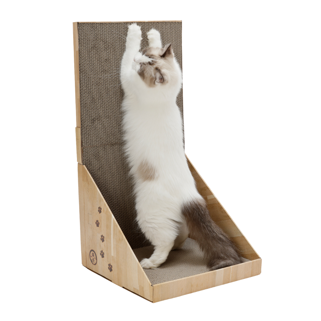 ①猫が「立ってのびのびつめとぎ」できる、タテ型タイプ。