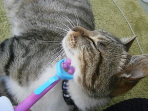 それならと思って愛猫カイトに試したところ、まさかの大成功!丁度ヒゲの生えているほっぺたの幅と、こちらのローラーの幅がベストマッチング。喉をゴロゴロさせて悶絶しています♪