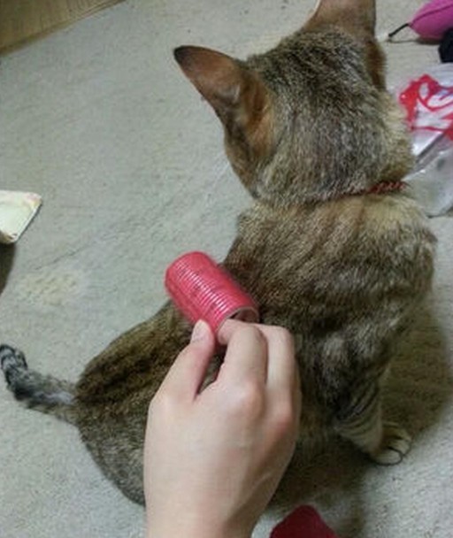 残り物には福がある、といいますが、まさかのこのカーラーも猫飼いにとっては大人気。猫にブラシ代わりに抜け毛をすくのにも使えますし、絨毯の抜け毛を掃除するのにも使えます。