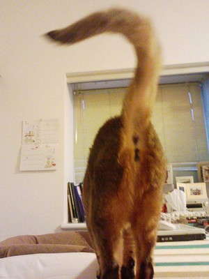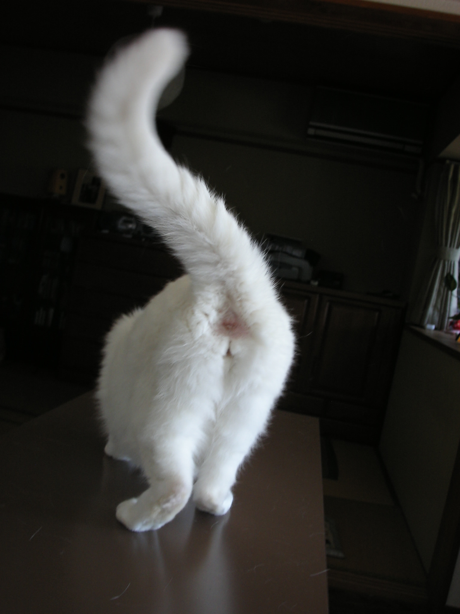 うちの猫シロミちゃんのしっぽ(お尻をポンとたたくとふわりと揺れる)