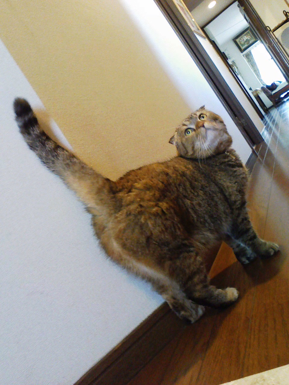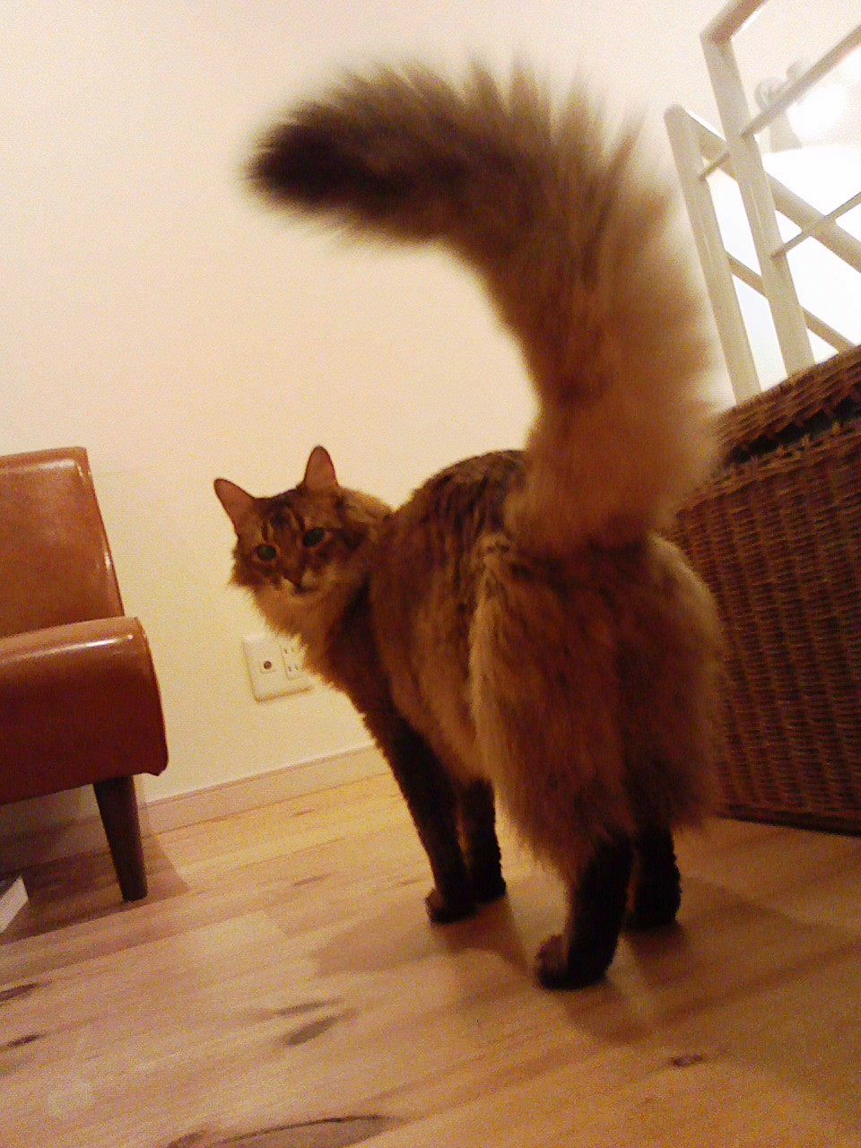 立てたしっぽを優雅に揺らし、リビングまで先導するその姿はまるで「さぁ、こちらへどうぞ」と言ってるようです。