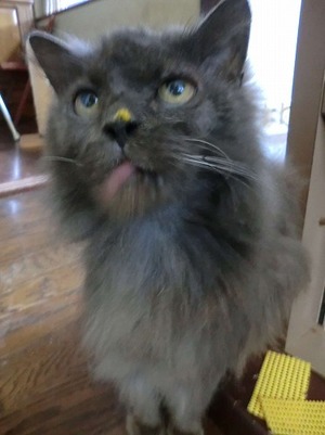 我が家のふうちゃん・・・鼻の頭に黄身を付けて