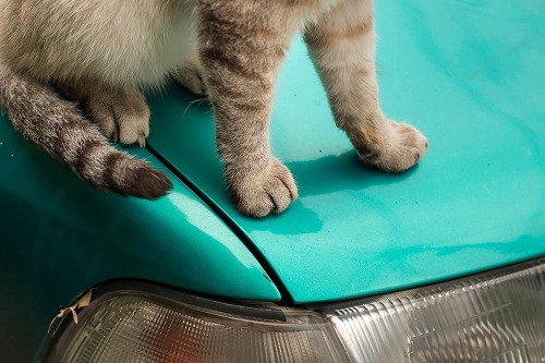 これは冬の時期に多い猫の隠れ家です。車のボンネットの中は冬になると外で暮らす猫にとって格好のベッドになるとか。