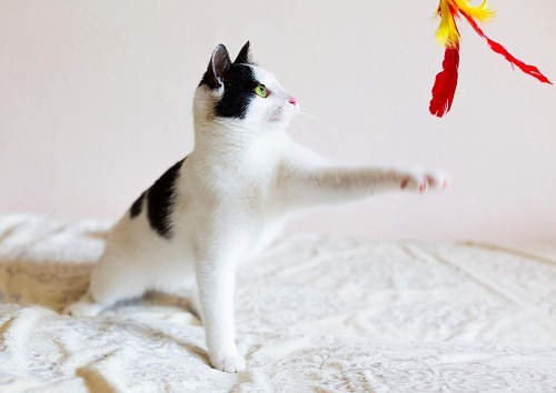 激しい遊びはできなくても、猫は死ぬまで本能を大切にする動物。猫に合わせた動きを心がけて、猫じゃらしなどで遊んであげることも大切です。