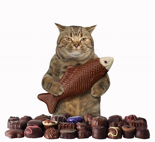 チョコレートに限らず、原料に「カカオ」が使われた食べ物は猫に与えないようにしてください。