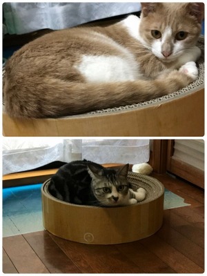 猫が好きなもの。ダンボール、爪とぎ、そして飼い主さんの膝の上?いつもあなたはどんな形の爪とぎを猫ちゃんに与えていますか?