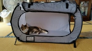 警戒心バリバリの神経質な性格の猫には「自分だけのお城」を与えてあげるのが一番。猫が一番好む場所に、猫壱のポータブルケージを置いてあげてください。