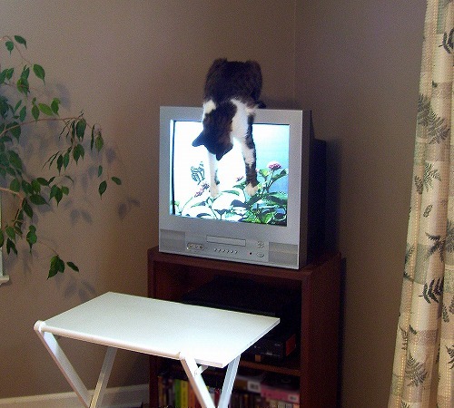 しかしテレビ自体は嫌いではないようです。スリスリしたり、上に乗って昼寝をすることもあります。おそらくカイトはテレビを別の生き物だと思っているようです。