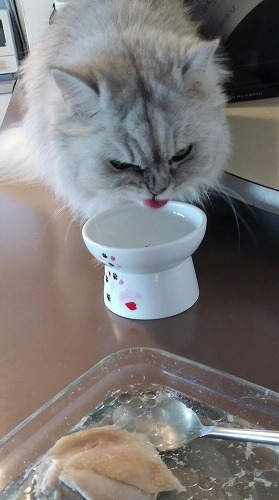 お水をあまり飲まない猫には。鶏肉を茹でたスープを作ってみてもいいですね。