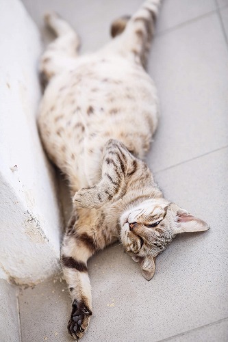 まるで体操選手のような、アクロバティックなポーズで寝ているねこの寝姿をみると、「ねこって体が柔らかいのね~。」とマジマジと見とれてしまいます。
