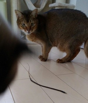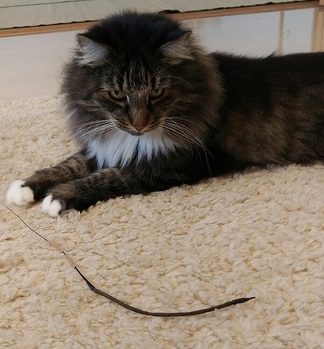 蛇とか見た経験がなくても猫のDNAには、似た動きに反応するように組み込まれているのでしょうね。