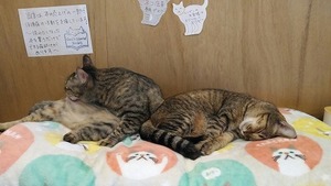 猫たちは従業員?なんですが午後2時過ぎに行ったので、お昼寝タイム。