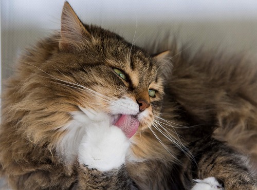 猫はとても綺麗好き。食事の後、トイレに行った後、遊んだ後、外から帰ってきたときなどはほぼ確実に毛づくろいしているはず。