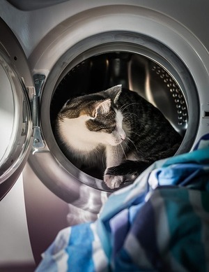 洗濯物が入っていて、ふわふわ、しかも適度に狭くてちょっと暗めの洗濯機は猫にとっては居心地の良さそうな場所に映るのでしょう。