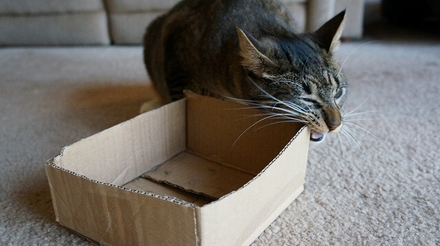 何日もご飯を食べておらず、ふらふらになっているなら話は別ですが、毎日きちんとごはんを適量食べている猫が、ちょっと空腹だからといって、段ボールを食べることはほとんどありません。