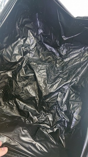 ポータブルトイレのほうはというと…内側が防水仕様なので、おしっこは弾いてくれています。