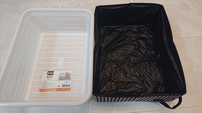 ↓ポータブルトイレにシンデレラフィットのカゴ↓