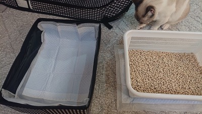 持ち運びということを考えると、軽いタイプの猫砂にも慣れておいてもらうのがいいだろうと思っています…