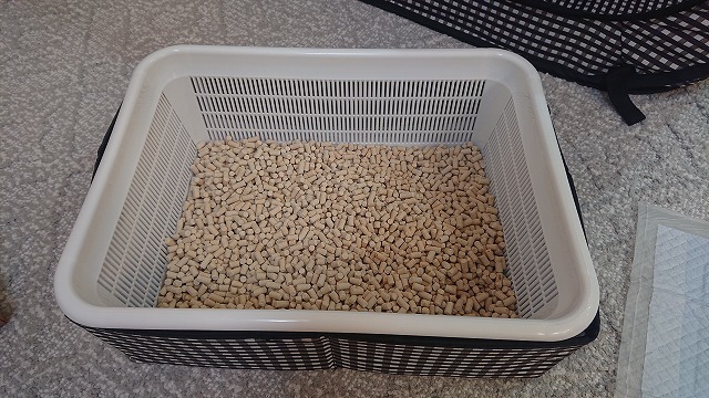 ↓ペットシーツを2枚敷いたポータブルトイレ↓