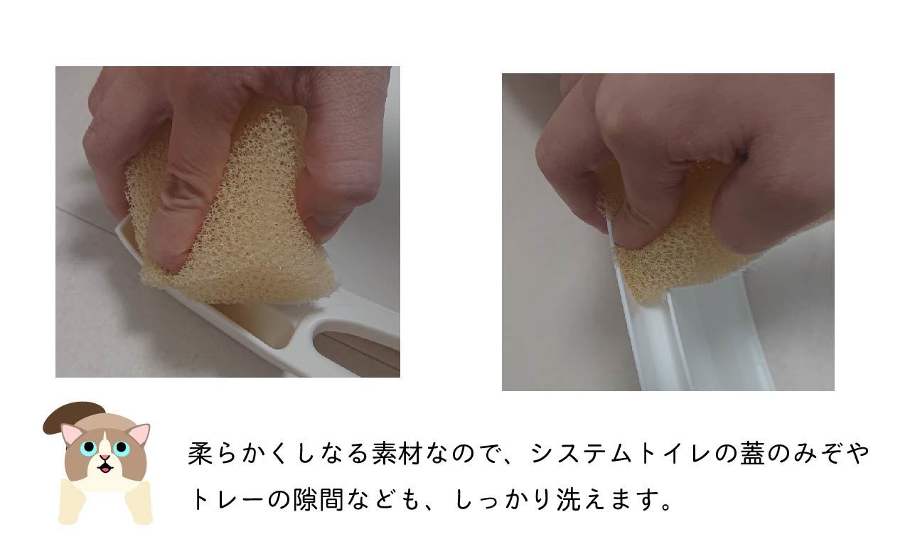 サイズだけ見ますと、ちょっと大きい?厚い?のですが、非常によくしなるので、システムトイレのようにパーツが多かったり、細かい溝が多かったり…