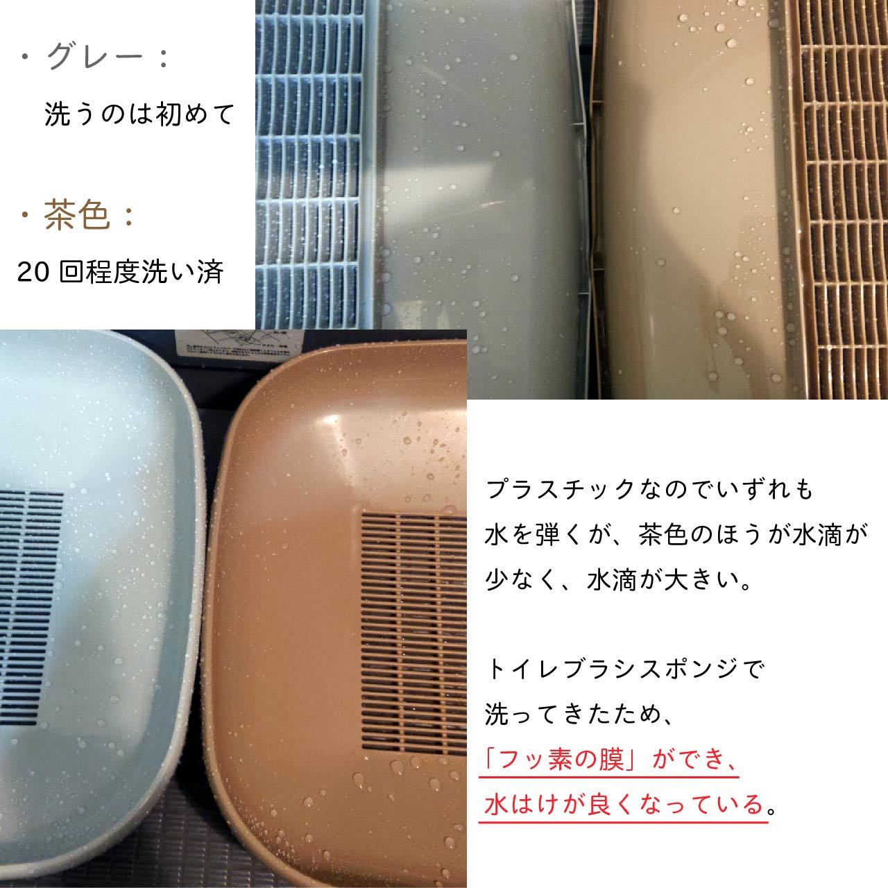 また、大きく違う!と思ったのは洗っている時グレーのトイレは臭ったのに対して、茶色のトイレはほとんど臭わないこと。