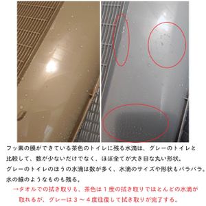 比べてみると、茶色のトイレのほうがグレーのトイレに比べると、水滴が少なく、また水滴のサイズが大きいのがわかります。