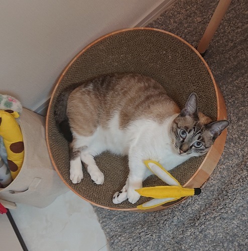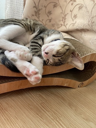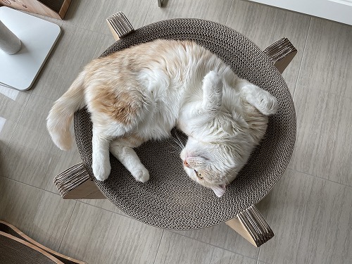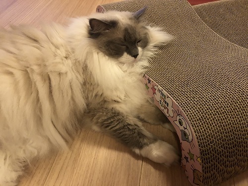 爪とぎにも、眠るのにも、ちょうどよいみたいで、よくくつろいでいる姿を見かけます。