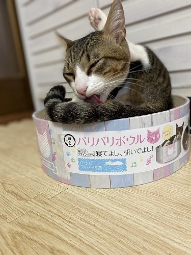 生後2カ月ごろに試作品を使わせてもらったのですが、とても気に入りよくバリバリボウル子猫用の上で寝ていました。