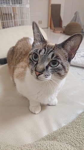 夜眠るときも私と主人の間に挟まったり、4歳になる息子にピッタリくっついたり、誰かと同じ布団じゃないと寝ない、かわいい甘えん坊さんです。