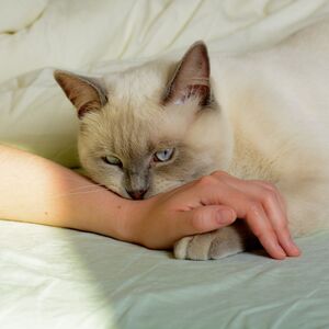 猫が人に飛びついてきて人のことを噛んだり、蹴ったりすることがあります。人は驚くことが多いですが、多くの場合、猫は大好きなご家族と遊んでほしくて飛び掛かってきます。