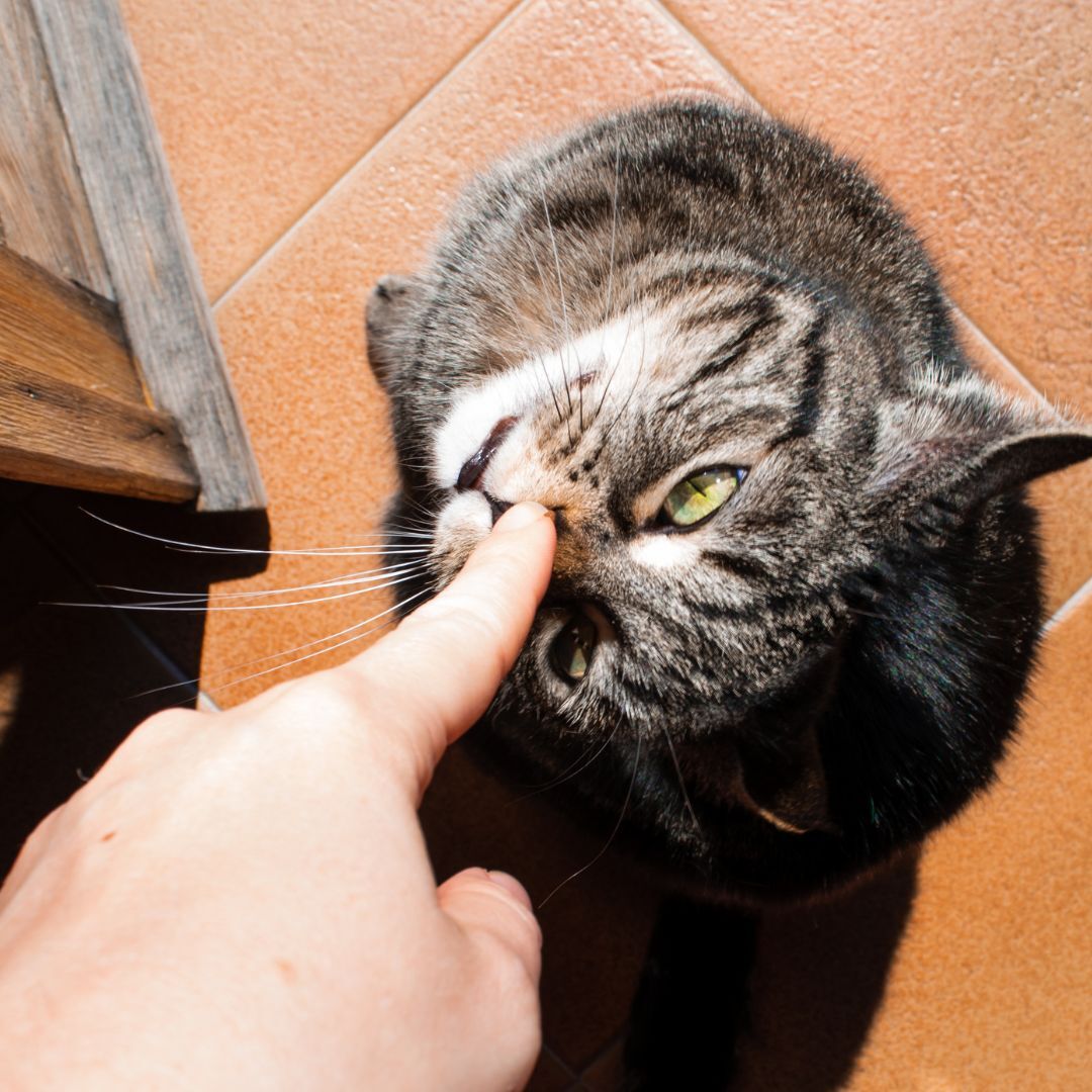 さらにかわいいしぐさとして、我が家の猫には「鼻タッチ」という技を教えています。