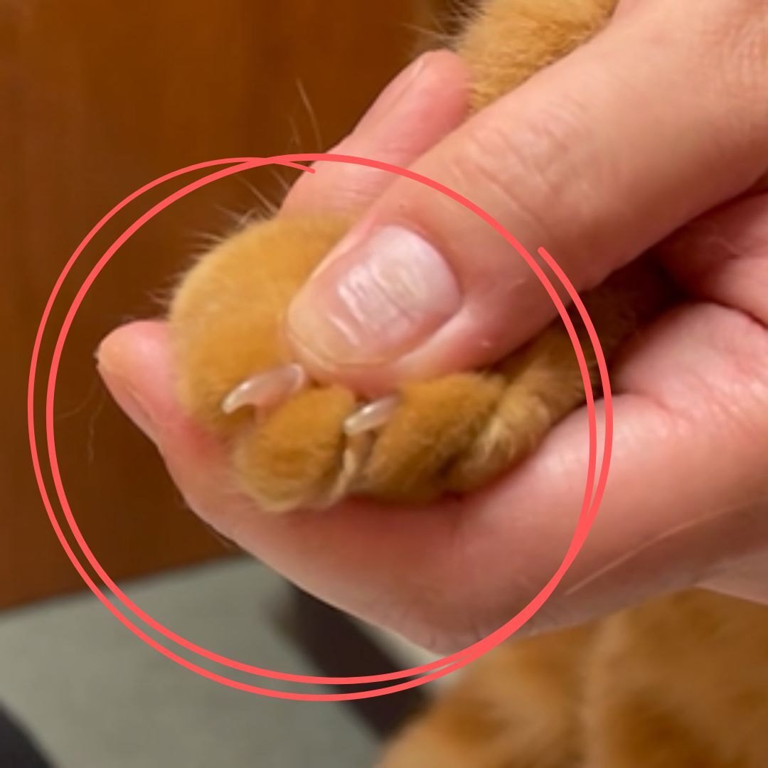 ②巻き爪になり、伸びた爪が肉球に刺さってしまう。