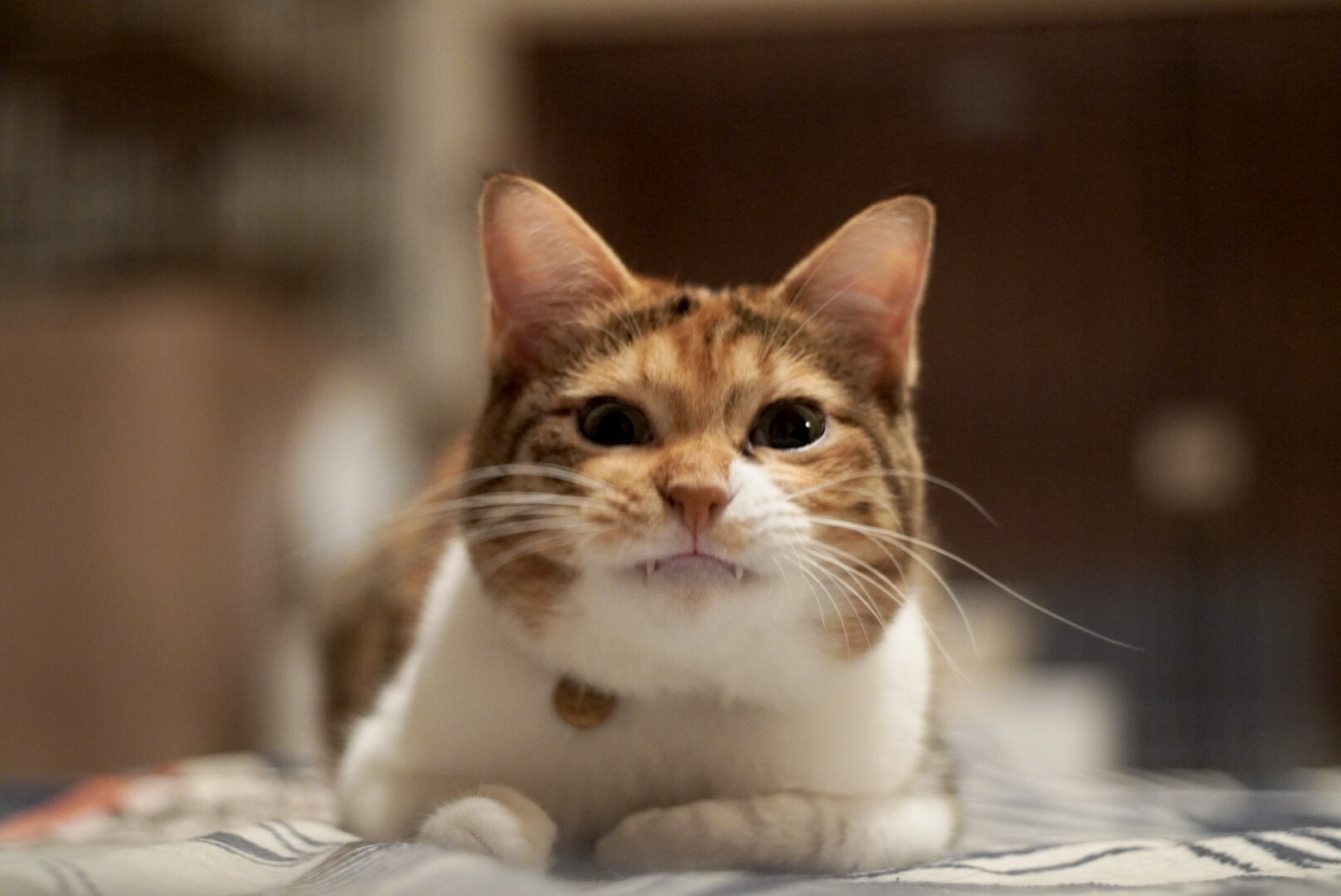 三毛猫はちょうど黒い毛がぱっつん前髪のモード系の美人。