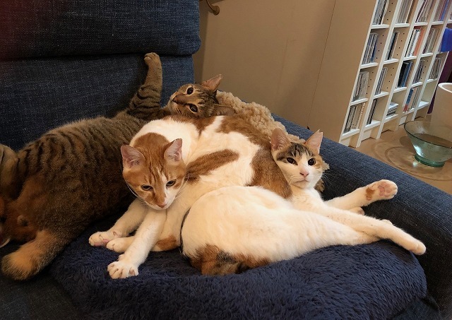 3週間後には私が手放すことが出来なくなり、ボランティアさんにお願いしてトライアル先の方にもお話していただいて晴れてみりこぴと一緒に3匹離れることなくうちに来てくれることになりました。