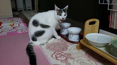 今までは二人の器を一つの台に離して置いてたのですが、どうしても一緒に食べなくてどちらかが待ってるようになったので、2つ買って離して置けるようにしたいとおもいました。