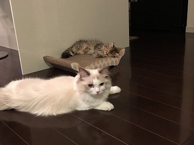 犬派だった私を変えたのは岩合さんの世界ネコ歩きです。猫も好きで、20代の時のホームステイ先のノルウェージャンフォレストキャット風の猫ちゃんが大好きでした。飼うならノルウェージャンと決めていましたが、三ツ星グルメのCMのラグドールに一目惚れして、キャッテリーさんで可愛い子に出会いました。