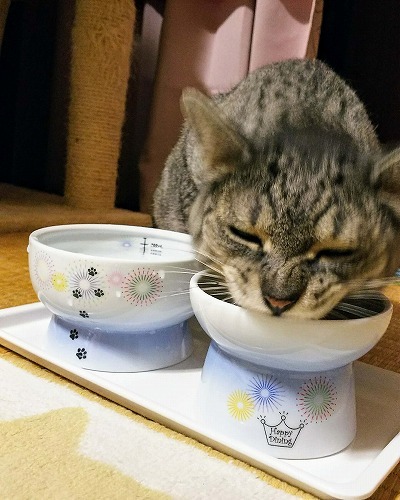 ★猫壱ご購入・ご愛用品★ ハッピーダイニング 脚付フードボウル 限定柄