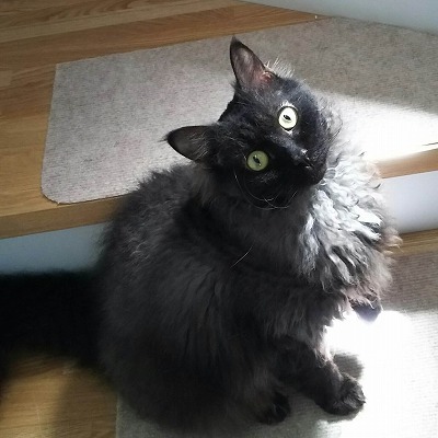 遊び大好きのツンデレ。ブラックスモークでクルクル巻き毛。1ヵ所だけ首に白い所あり。