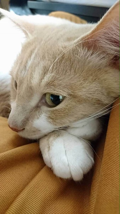 捨てられていたとは思えないほどとにかく元気で、よく鳴いて、よく食べて、よく寝る健康的な子です。