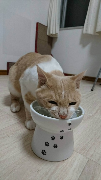 ★猫壱ご購入・ご愛用品★ ハッピーダイニング 脚付フードボウル 猫柄