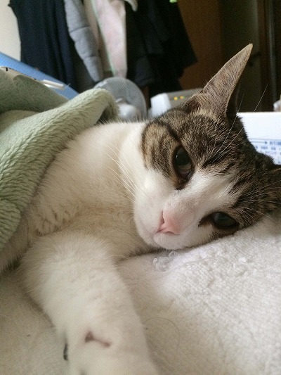 わかりにくいかもしれませんが、頭の上の黒の部分の柄がハートに見える可愛い猫ちゃんです。
