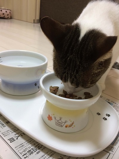 今までは普通のお皿だったので、食べにくそうだったのと、少し高めの方が猫は良いと聞いてたので、猫壱さんの商品が欲しくてずっと悩んでましたが、一歳を機に思い切って、3点セットで購入しました。