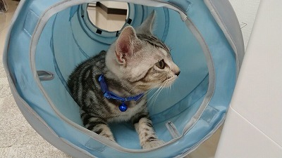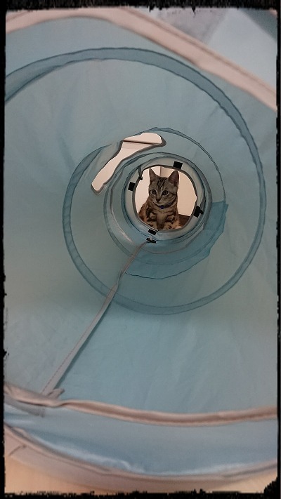 自分で勝手に遊んだり、 じゃらしているとトンネルの端から構えて狙いをつけ、中を走ってきたりします。