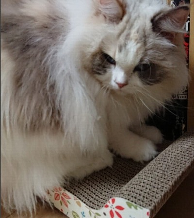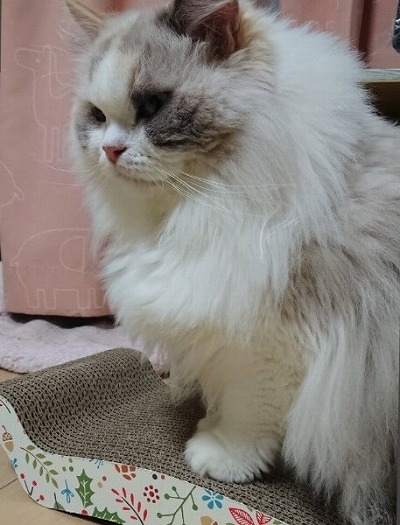 コンテスト何度か優勝している子でブリーダーさんから譲ってもらいました。もっと若い子もいたのですが、初めて会うのに太ももの上でふみふみしてくれました。それにキュンときて一目惚れで連れて帰りました。