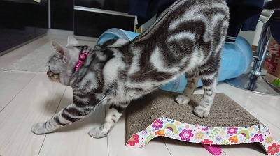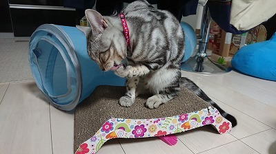 最初あまり爪研ぎを使ってくれなかったのですが、バリバリベッドにしてからは使ってくれるようになりました!
