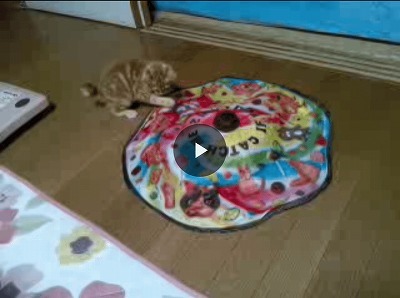 キャッチミーは、子猫は、疲れるほどよく遊びました。ハッピーダイニング脚付きフードボールとオゥターボールは、飼い主共々お気に入り。