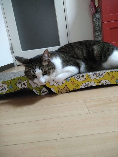 爪を研いだり、寝転んだり出来るので重宝しています。2匹いるので、1つだと取り合いになりもう一つ購入しました。