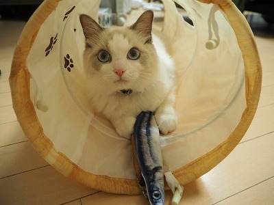 猫壱さんのトンネル、箱から出した瞬間からすごく楽しそうに遊んでます。