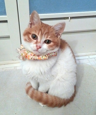 保護ネコの譲渡会で白と茶色のかわいい毛並みに惹かれて連れて帰りました。