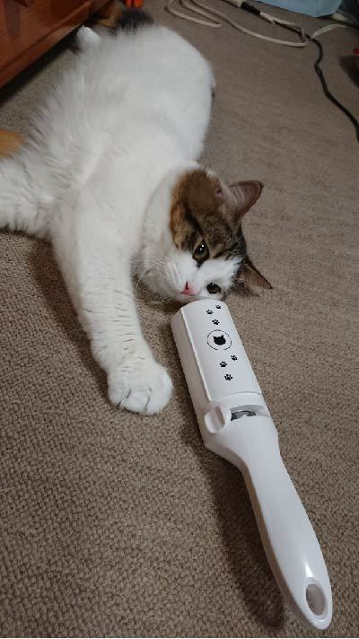 冬毛から夏毛に変わるこの時期、毛足の長い猫は、色んな所に毛が引っ付くので、助かります。